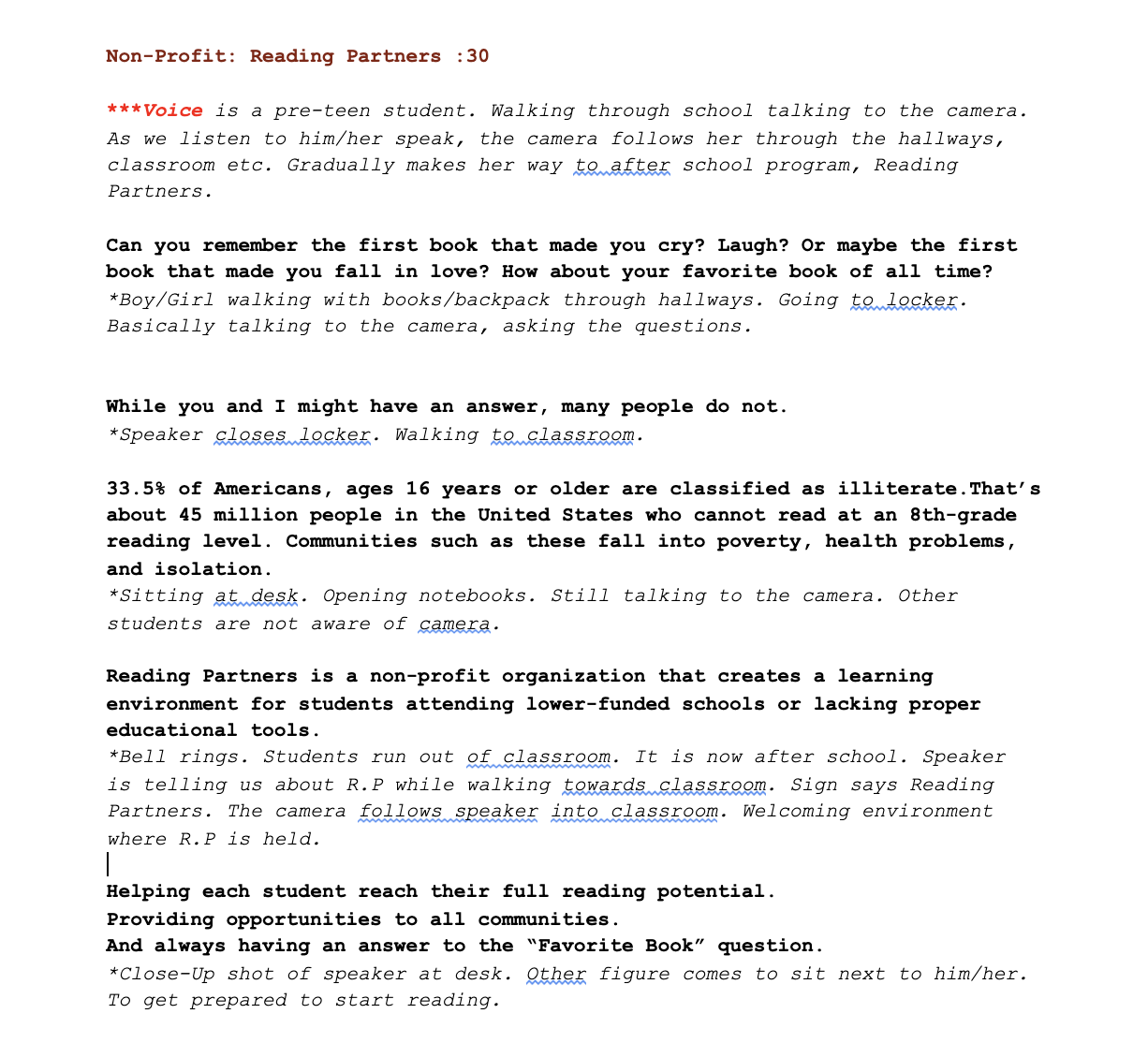 To present the unfortunate percentage of illiteracy in the U.S, and provide a solution. The solution— being the non-profit organization known as Reading Partners.